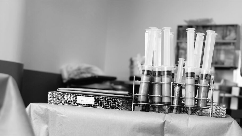 Nach der Entnahme wird das Fett speziell aufbereitet, um die wertvollen regenerativen Stammzellen und Wachstumsfaktoren zu konzentrieren. Dieses hochwirksame Nanofat bildet die Grundlage für die anschließende Hautverjüngung mittels Needling.